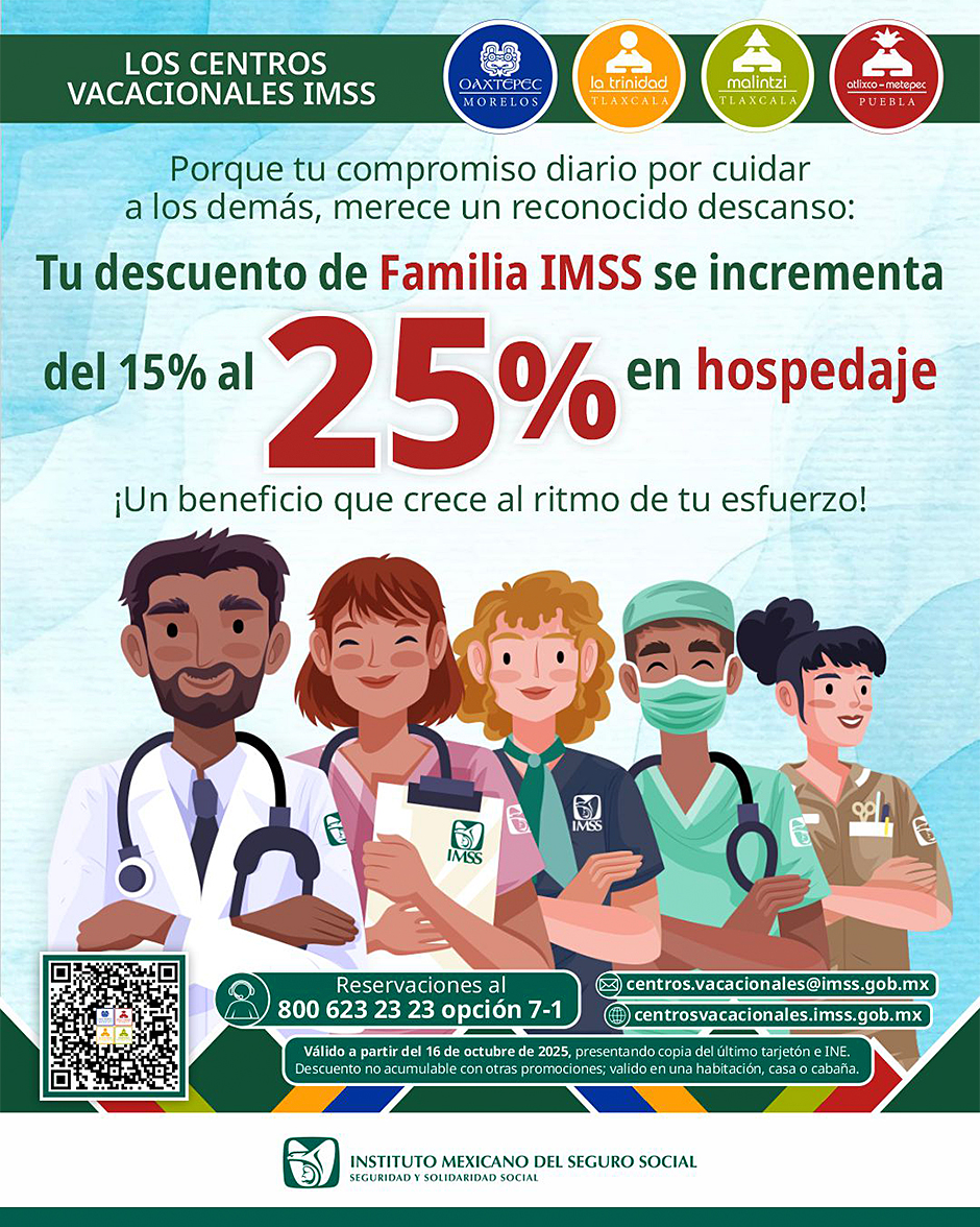 Si eres Trabajador IMSS puedes contar con un 50% de descuento, INAPAM 30% de descuento, Derechohabientes IMSS 10% de descuento.